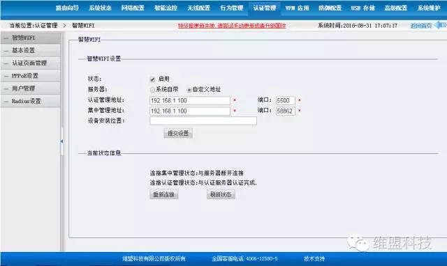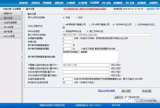 1、进入路由器认证管理页面,进行相关设置,如图: