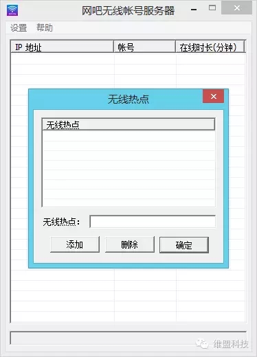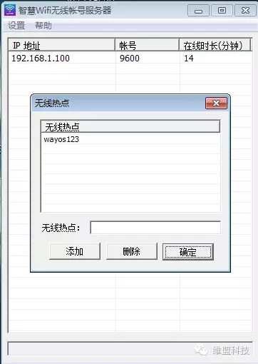 在无线热点文本框输入无线热点名称,点击添加后保存,可添加多个无线热点。