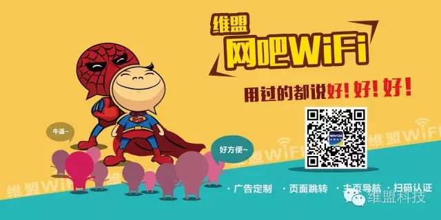 而WayOS针对中小网吧推出的维盟网吧WiFi认证方案,不仅支持验证码和二维码等多种认证模式,支持免授权接入和临时授权认证,此外还可以在智能终端的认证界面自定义问候语,支持认证页面广告自定义,方案成熟可靠,无需对网吧原来网络构造进行大刀阔斧,可扩展性强,性价比高,是中小网吧部署WiFi的理想选择。