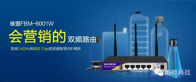维盟FBM-6001W采用11AC双频+3*高增益天线,128M内存,16M闪存,实际带机量80台,采用维盟第四代智能QOS流控技术,具有行为管理,多WAN接入、智能带宽管理、VPN等功能,智能分配流量、保证游戏不卡、网页更顺畅;可广泛应用于企业、酒店、商场、餐饮娱乐场所或公共场所。
