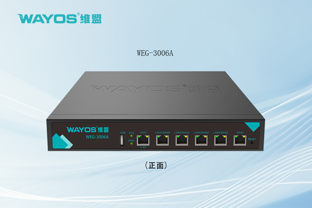 WEG-3006A下一代智能网关,是维盟科技针对中小型企业、网吧、出租屋而设计的突出上网行为管理、带宽叠加、智能QoS、集成PPP0E认证服务器的多功能防火墙路由器。具备5个广域网接口,最大支持150台终端同时在线。全新的硬件方案,高转发性能,标配2500M网络端口,支持全新的全网管理系统、支持SD-WAN、支持全新的AI盟友3.0。